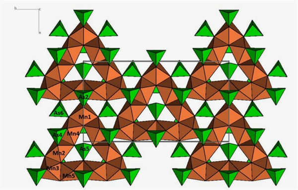 据了解,刘氏钙锰矿发现于智利阿塔卡马地区矿床氧化带,其理想化学式为Ca₂Mn³⁺₃O₂(AsO₄)₃(H₂O)₂·H₂O。研究团队通过单晶X射线衍射等手段,成功解析其原子级晶体结构,发现其中存在罕见的Kagomé网络结构。这一拓扑结构在凝聚态物理研究中具有重要意义,可为新型磁性材料设计和量子行为研究提供天然结构模型。