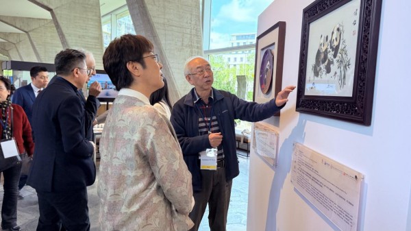 开幕式现场,“字融匠心,艺见中国”展厅吸引了大量各国观众驻足流连、赞叹不已。一字一画皆成景,一针一线总关情,东方美学在巴黎的天空下悄然绽放。本次展览紧扣“器以载道”的东方哲学,从中国工艺美术大师博物馆丰厚的馆藏中,甄选了钱美华、包英志、孟德芝、熊建新等数十位大师的匠心杰作。十二件(套)国家级非遗代表性作品,如繁星汇聚,涵盖了刺绣、雕塑、陶瓷、漆器、蓝印花布、珠宝设计、景泰蓝七大艺术门类。它们不仅代表了中国工艺美术的最高技艺水准,更以巧夺天工的方式,将汉字的形、音、义融于每一缕丝线、每一道刀痕、每一笔釉彩之中——或直抒“福”“和”“寿”的吉祥意蕴,或以熊猫憨态、自然风物为隐喻诗学,生动而深情地诠释了汉字所承载的民族记忆与文化精神。一器一世界,一字一天地,东方智慧在匠心与文字的交融中熠熠生辉。