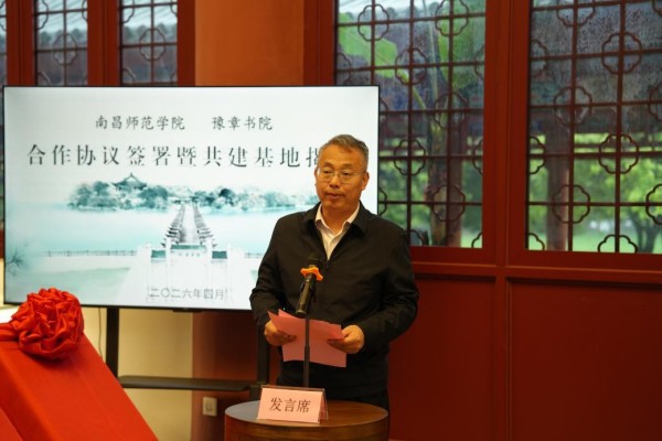 4月16日,南昌师范学院与南昌市图书馆(豫章书院管理处)在豫章书院举行合作协议签署暨共建基地揭牌仪式。江西省文化和旅游厅公共服务处一级调研员黄玲,江西省新时代文明实践促进中心副主任郭春林,中共江西省委教育工委宣传部、省教育厅社政处一级主任科员王荣华,中共南昌市委宣传部分管日常工作的副部长、市文明办主任熊中高,中共南昌市委宣传部二级调研员李学聪,南昌市文化广电旅游局党组成员、副局长曾育婷,南昌市图书馆馆长刘鹍,副馆长、豫章书院管理部部长罗卓舟,南昌师范学院党委书记王金平,校长杜建强,党委委员、副校长徐斌出席活动。活动由徐斌主持。