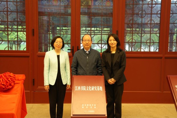 杜建强、黄玲、曾育婷为共建“江西书院文化研究基地”揭牌。