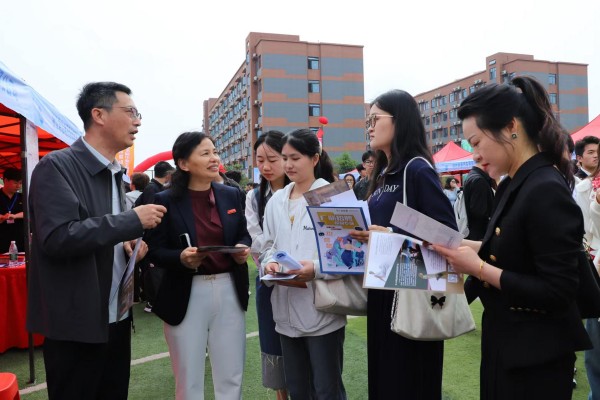 双选会现场气氛热烈,院长李冰颖、党委书记邓洪峰走访企业展位,与招聘单位代表亲切交谈,详细了解企业人才需求、实习保障及职业发展通道等方面情况。