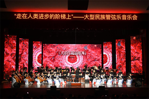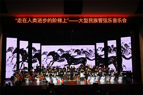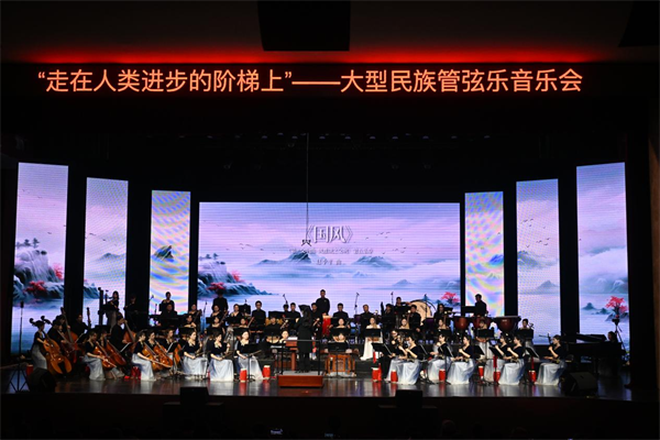 本场音乐会紧扣“走在人类进步的阶梯上”这一主题,不只是一次民族音乐展演,更是一堂融阅读推广、美育浸润和价值引导于一体的校园美育实践课。整场演出以经典作品为纽带,把文字中的思想力量、历史中的精神品格、文化中的审美追求,通过音乐导赏、作品演绎和舞台表达有机串联起来,让观众在聆听中体悟阅读的厚度,在欣赏中感受美育的温度,在沉浸中增强对中华优秀传统文化和家国情怀的认同。