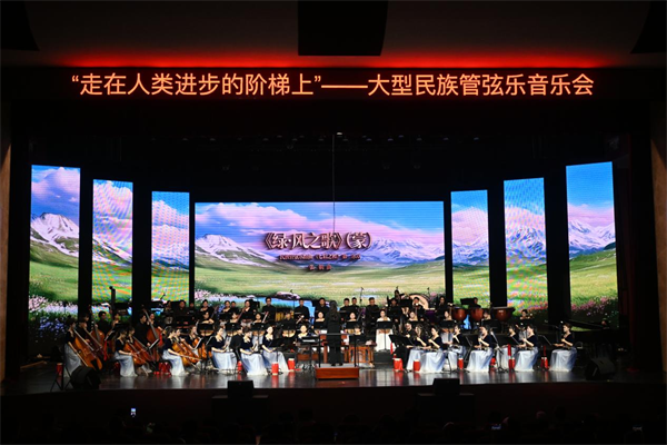 音乐会在民族管弦乐《大潮》中拉开帷幕。作品气势磅礴、节奏铿锵,以奔涌向前的音乐形象展现时代洪流的壮阔景象。随后,《大寨红花遍地开》《骏马奔驰》《绿·风之歌》等作品依次上演,或热烈昂扬,或奔放豪迈,或辽阔悠远,在多样化的艺术风格中展现了民族音乐丰富的表现力,也让现场观众在旋律流转之间感受到中华文化的多彩气象与深厚底蕴。