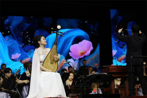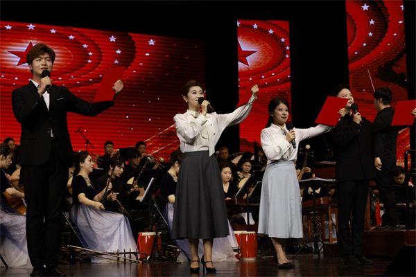 二胡重奏《山歌》取材江西兴国山歌,旋律质朴清新、情感真挚动人,将赣鄱地域文化的独特韵味融入艺术表达之中,展现了民间音乐蓬勃鲜活的生命力。配乐诗朗诵《足迹与道路:一条小道的思想长征》则以音乐与语言交织的方式,把历史记忆、文学表达与精神追寻融为一体,引导观众在艺术感染中回望峥嵘岁月、感悟信仰力量。琵琶协奏曲《云想·花想》从古典诗词中汲取灵感,以细腻婉转的音乐语言展现东方美学神韵;《国风》则以恢宏大气地表达礼赞中华优秀传统文化,彰显中华文明绵延不绝的精神气象。音乐会在《永远的山丹丹》中推向高潮,返场加演《欢聚一堂》《好汉歌》,现场掌声不断、气氛热烈。