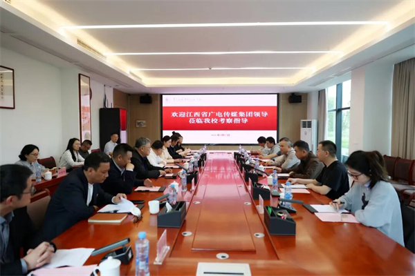 4月17日,江西广电传媒集团总经理韩兴文一行莅临南昌应用技术师范学院调研考察,与南昌工学院、共青城市政府及江西软云科技股份有限公司相关负责人齐聚一堂,围绕“AI短剧”产教融合开展深度调研座谈,共探数字文化产业与教育协同发展的新路径。江西超弦控股有限公司董事长、南昌工学院理事长王斌出席座谈会。