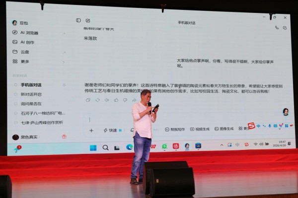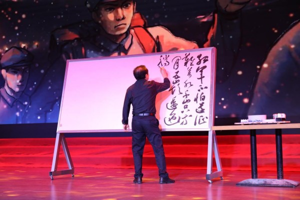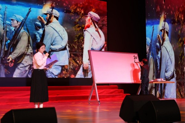 诗会在四大篇章层层递进,将红色基因、陶瓷文化与中华优秀传统文化深度融合,更创意融入AI赋能环节,用诗歌诵读、情景演绎、汉服走秀及创新演绎等多元形式,让经典与时代同频共振。开篇“瓷润谷雨·春和景明”,合诵《瓷韵书香青花蓝》、独诵《我是景德镇》与汉服秀相映成趣,将瓷都千年匠心与谷雨生机藏于视听之间,尽展东方美学之韵;“赤心长歌·文脉相传”篇章中,《永远的九岁》《延安的光》等节目回望革命征程,让信仰之光直抵人心。“和韵流芳·声耀山河”与“思绪奔涌·听风叙唱”两大篇章接续发力,革命家书诵读重温烽火岁月的家国深情,《土地的誓言》《新长征路上的赣鄱回响》抒发青年担当,书法与诵读《书诵·长征》则以笔墨与声音再现长征史诗,青花与诗韵相融、经典与创新碰撞,每一个节目都饱含赤诚与热爱。诗会创意节目《AI赋能诗词》更是打破传统演绎边界,以科技为翼,让千年诗词在智能演绎中焕发别样新生,成为诗会的一大亮点。