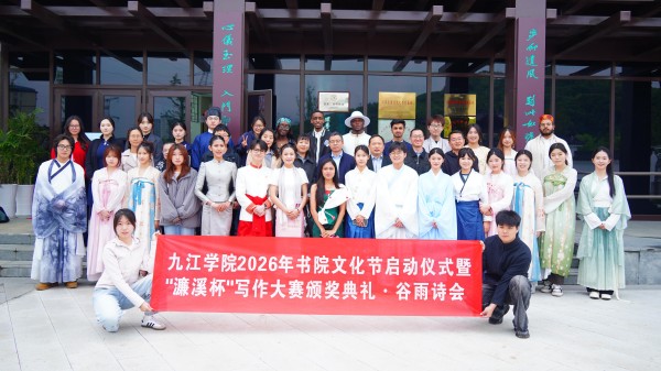 4月22日,时值谷雨,九江市周敦颐纪念馆内书香氤氲、诗韵悠扬。九江学院2026年书院文化节启动仪式在此举行,100余名中外学子以诗会友,在千年书院文脉中体味阅读之美。