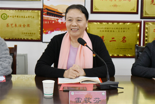 同学们饱含深情的演绎让雷筱芬深受感动、热泪盈眶,她寄语同学们要弘扬先辈无私无畏的革命精神,深刻感悟初心使命和信仰的力量,传承红色基因,赓续红色血脉,坚定不移听党话、感党恩、跟党走,切实当好红色基因的传承者、宣传者、践行者。