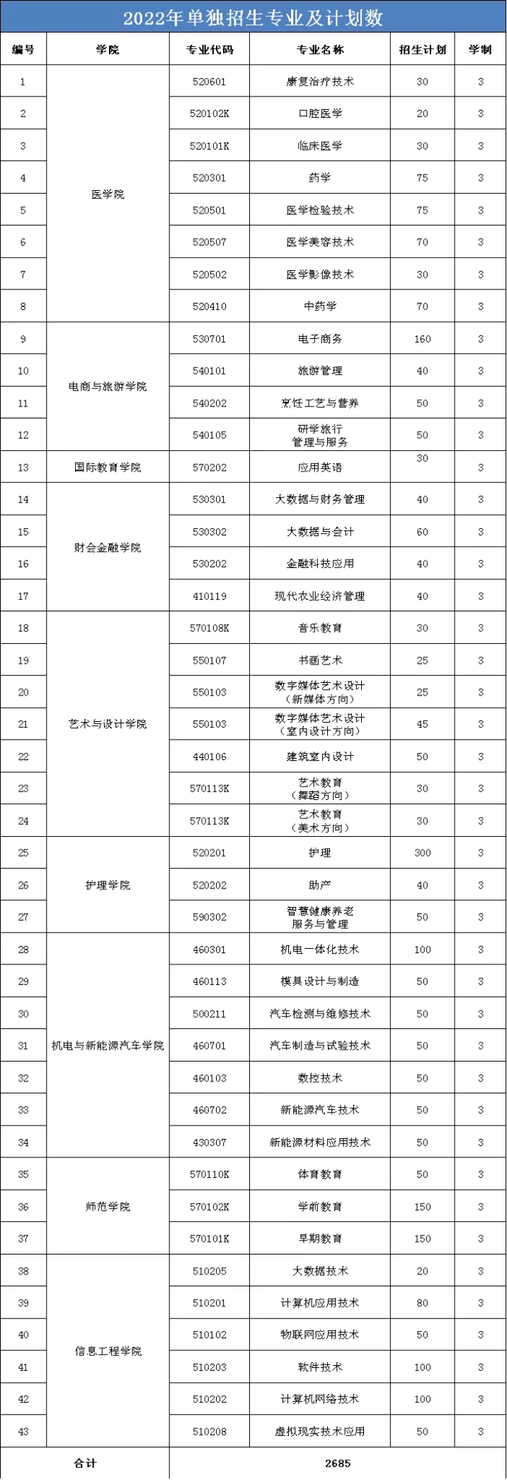 单独招生计划2685人,与丰城中等专业学校联合培养招生计划200人。