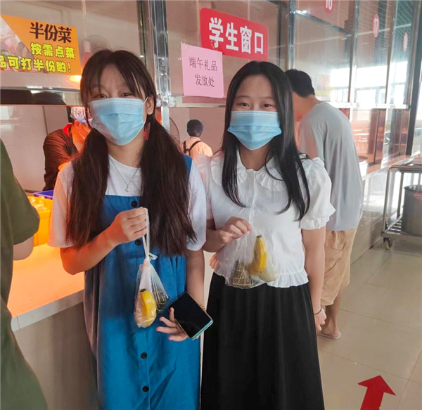 “进大学过的第一个端午感觉就是不一样,虽不能和家人相聚,但是学校食堂发的粽子很美味,鸭蛋流油,让我品尝到了家的味道,我们学校的食堂也成了别人家的食堂,这份沉甸甸的爱让远离家乡的我很感动!”21级会计大专1班郭玉琴同学表示,因为疫情和期末考试的原因,今年端午节回不了家,但收到学校的礼物很暖心,让人找到了家的感觉。