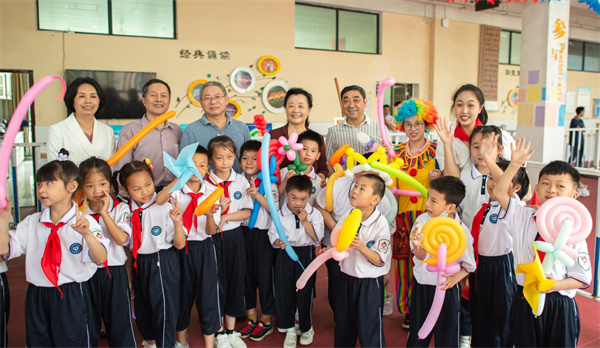 孩子们用热烈的掌声欢迎领导们的到来,并向走访慰问的领导们献上鲜艳的红领巾。市关工委为孩子们捐赠了价值4万元的校服、儿童三轮车、篮球等暖心礼物。