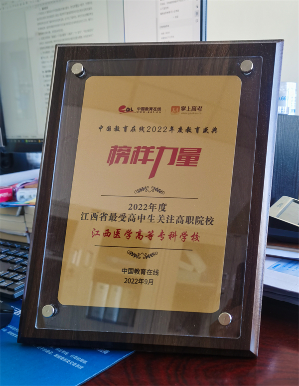 近日,中国教育在线“榜样力量·2022年度教育盛典”评选获奖名单揭晓,江西医学高等专科学校荣获“2022年度江西省最受高中生关注高职院校”荣誉称号。