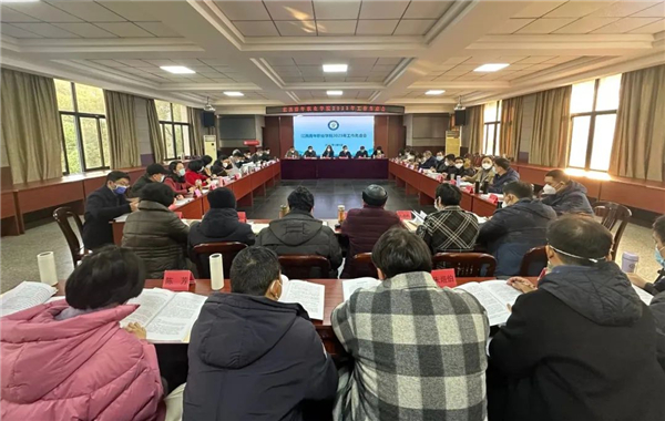 会上,院长郑炎明介绍了学校2022年取得的成绩,分析了2023年学校面临的形势。各位班子成员就分管领域工作谈了思路,并对学校工作提出意见建议。有关职能部门结合实际,做了典型发言。