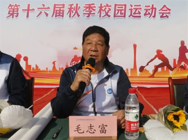 党支部书记毛志富同志致开幕词,他代表学校对运动会的胜利召开表示热烈的祝贺,对精心筹划运动会的工作人员表示诚挚的感谢,并向全体运动员、裁判员致以亲切的问候和美好祝愿。希望运动员们在赛场上能发扬顽强拼搏、突破自我的体育精神。