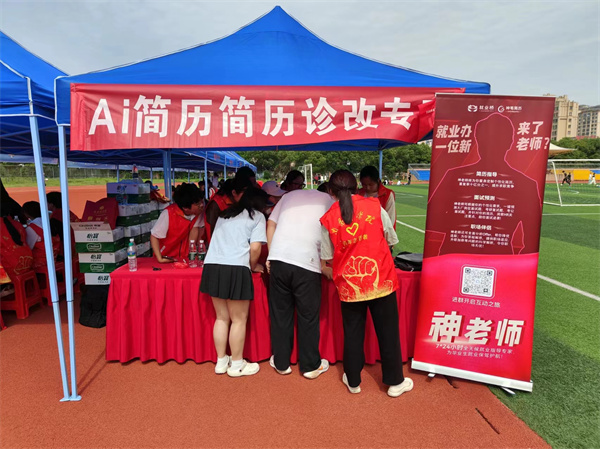 在招聘会现场,就业桥工作人员为现场同学们提供简历修改、简历制作思路,面试训练营服务,不仅有效提升了学生们制作简历的能力,还掌握了更多面试技巧,深受学生们欢迎。
