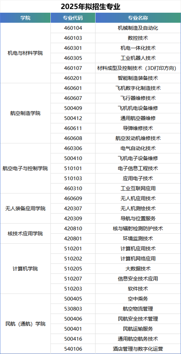 学校全面贯彻党的教育方针,落实立德树人根本任务,培养德智体美劳全面发展并掌握航空产业相关基础知识和熟练岗位技能的高素质技术技能人才。加强以航空制造、航空维修、航空服务、导弹维修及核技术应用为核心的“三航一弹一核”专业特色建设,形成航空国防特色鲜明,多专业协调发展的专业格局。办学目标定位于服务国防、服务军工、服务低空经济和航空产业发展。