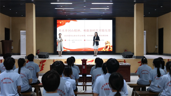 在“双师同堂”思政课上,思政课教师郭超与井冈山革命烈士陵园讲解班班长汤小共同授课,以“青春之问”为主题,在学院柏露红色教育基地开展沉浸式教学。郭超深入讲解井冈山精神的时代价值,汤小饱含深情讲述革命先辈的故事,课堂设计了“诵经典、寄书信、话心得”等互动环节,引导学生在历史现场触摸信仰温度。课后还布置了“井冈山精神的数字化转译”的特别作业,引导学生把感动转化为信念、将感悟转化为创意,实现从心灵震撼到知行合一的升华。