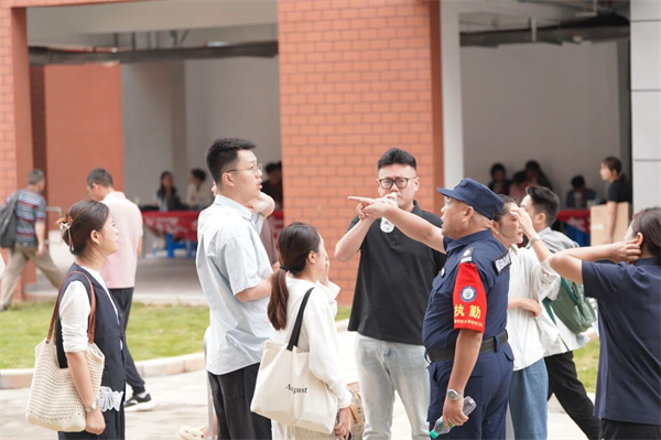 在迎新现场的热闹喧嚣背后,还有一群身影在默默守护:烈日下,安保人员身着制服在各路口往返巡查,灵活调度车辆、疏导人流,为校园筑牢安全防线;保洁人员推着清洁车不间断巡回打扫,用双手守护着校园的整洁如新;食堂叔叔阿姨们早早忙碌起来,提前备好热气腾腾的餐食,用饭菜香味驱散新生旅途的疲惫;宿舍楼内,宿管阿姨站在楼道口,耐心解答着“热水怎么用”“快递放哪里”等问题。