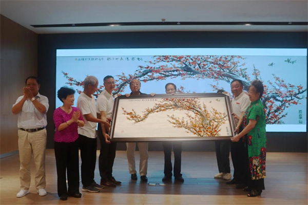 捐赠仪式上,1965级校友集体向学院捐赠了瓷板画《梅寄清香甲子情》,寓意深刻,传递着校友对母校的祝福。