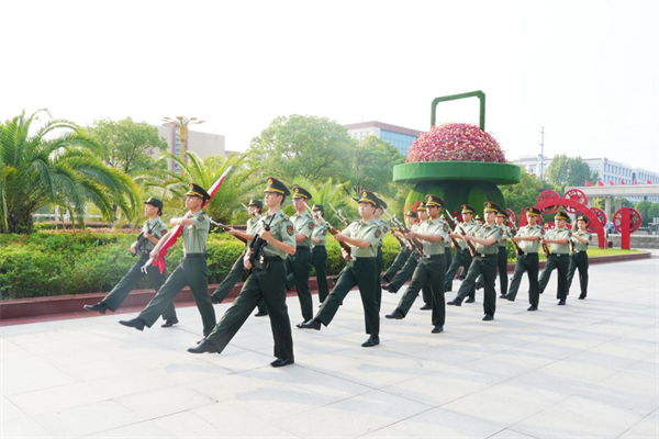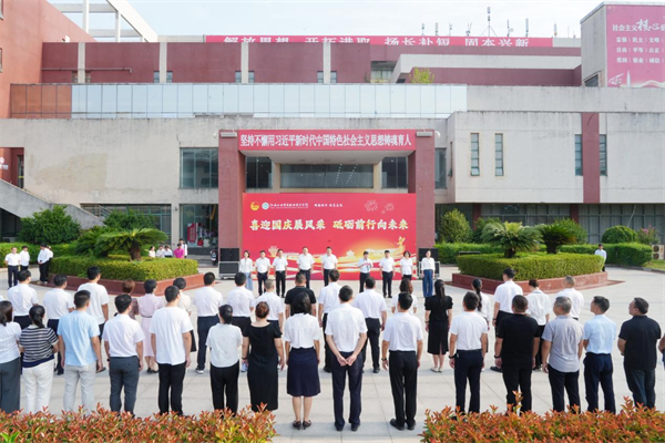 为热烈庆祝中华人民共和国成立76周年,大力弘扬爱国主义精神,引导青年学子厚植家国情怀、勇担时代使命,9月29日上午,江西工业贸易职业技术学院在国旗广场举行“喜迎国庆展风采 砥砺前行向未来”升国旗仪式。学院全体在家领导、全体中层干部、各系团总支书记与600余名学生代表齐聚一堂,以庄严仪式致敬祖国华诞。党委副书记吴新谱主持仪式。