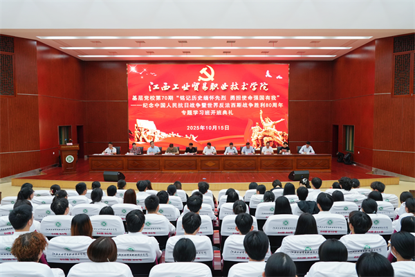 10月15日下午,江西工业贸易职业技术学院在图书馆学术报告厅举办基层党校第70期学习班开班典礼。学院党委书记、院长、基层党校校长万晓波,党委副书记、基层党校副校长吴新谱,党委委员、党委宣传部部长、统战部部长谢继勇,院长助理、院办主任、人事处处长王佳出席会议,党委组织部、学生工作处、团委负责人,各系部党支部书记、指导老师及学习班全体学员参加开班典礼。吴新谱主持开班典礼。