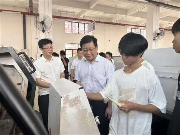 调研期间,陈飞书记一行通过实地考察、座谈交流、随机听课、查阅教学资料、与学生代表对话等多种方式,深入了解三所合作中专学校在“3+2”长学制招生、课程体系设置、师资队伍建设、学生日常管理、产教融合推进等方面的实际情况。每到一所学校,调研团队均走进课堂,随堂听取思政课与专业课教学情况,直观感受教学氛围与学生课堂表现;深入各校产教融合基地及合作企业,详细考察实训设施条件与校企协同育人成效;同时与该校领导、教师代表围绕人才培养衔接痛点、教学质量保障难点展开深入研讨,广泛征集优化“3+2”培养模式的意见建议。