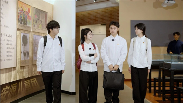 在安源路矿工人补习学校旧址,斑驳的木桌、褪色的锦旗、黑板上“从前是牛马,现在要做人”的粉笔字迹,无声讲述着百年前工人们渴求知识、争取尊严的感人历史。讲解员生动讲述了刘少奇同志冒雨授课、工人“小先生”带领学习等动人细节,进一步加深了同学们对红色精神的理解。有队员动情地表示:“仿佛触摸到了祖辈青年时代的热血与理想。”