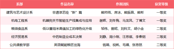 近日,2025年江西省职业院校技能大赛教学能力比赛圆满落幕。全省高职院校的123幅优秀作品同台角逐,江西工业贸易职业技术学院教师团队凭借扎实的专业功底、创新的教学理念和精益求精的工匠精神,勇夺佳绩,荣获一等奖2项、二等奖3项。一等奖获奖数量和获奖总数均位列全省高职院校首位!