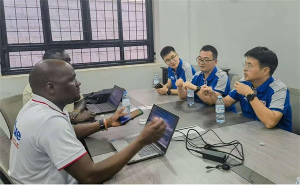 学院教学团队与乌干达鲁扬子理工学院负责人、豪爵公司驻乌干达代表共同召开项目专项启动会,围绕天工学院实训室布局、设备引进、课程设置及安全标准等问题开展研讨,对实训场地、空间规划、水电设施等进行了实地测量与评估,保证后续实训室能满足教学需求。