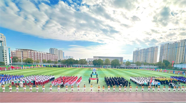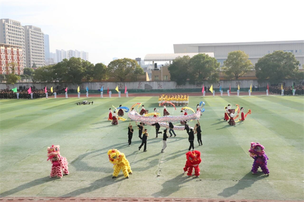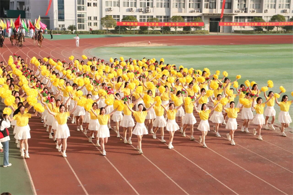 在运动员代表和裁判员代表庄严宣誓后,精彩纷呈的开幕式表演将现场气氛推向高潮。舞龙舞狮表演以穿、腾、跃、翻等高难度动作点燃全场,展现了传统体育文化的魅力;健美操表演《活力节拍,风采再现》动作整齐划一,展现出学子们的青春活力;深情激昂的舞蹈《黄河颂》令人心潮澎湃;最后由千名新生带来的大合唱《走向复兴》,迷彩绿与红色旋律交织,既是军训成果的展示,更是青年一代传承红色基因、担当复兴使命的生动诠释。