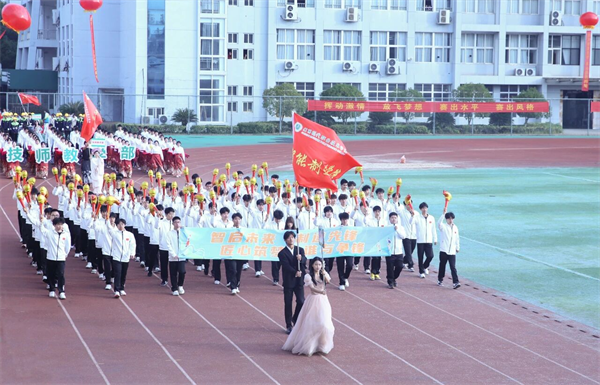 党委副书记、院长廖列法致开幕辞。他首先代表学院向为本届运动会付出辛勤努力的全体工作人员、裁判员表示衷心感谢。廖列法指出,体育承载着国家强盛、民族振兴的梦想,学院始终将体育工作摆在“五育并举”的重要位置,持续推动体育事业高质量发展。近年来,学院在省级职业院校体育竞赛中屡创佳绩,校内体育文化氛围日益浓厚,形成了“人人爱体育、人人享体育”的良好局面。他希望全体运动员发扬“更快、更高、更强——更团结”的奥林匹克精神,赛出风格、赛出水平,实现运动成绩与精神文明双丰收。