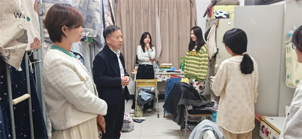 罗来松一行先后来到十栋、十二栋、九栋和六栋学生宿舍。时值初冬,气温渐降,宿舍区的用电安全成为本次检查的重中之重。他细致查看了各宿舍的用电环境,与同学们亲切交流,详细了解他们的学习进展、生活适应情况以及日常用电习惯。“学习任务重不重?”“晚上休息得好吗?”“这个排插是什么牌子的?购买渠道正规吗?”一句句关切的询问,拉近了师生距离,也将安全意识的种子播撒在同学们心间。在检查过程中,罗来松反复叮嘱同学们务必高度重视用电安全,明确指出严禁使用各类违章电器,并细致检查了同学们使用的排插、充电线等设备的质量安全状况,提醒大家务必购买符合国家安全标准的产品,避免因小失大。他还细致地了解了同学们课余时间的安排,鼓励大家要珍惜时光,养成自律习惯,“坚持每天学习,不断积累知识;坚持每天运动,保持健康体魄,做到德智体美劳全面发展。”