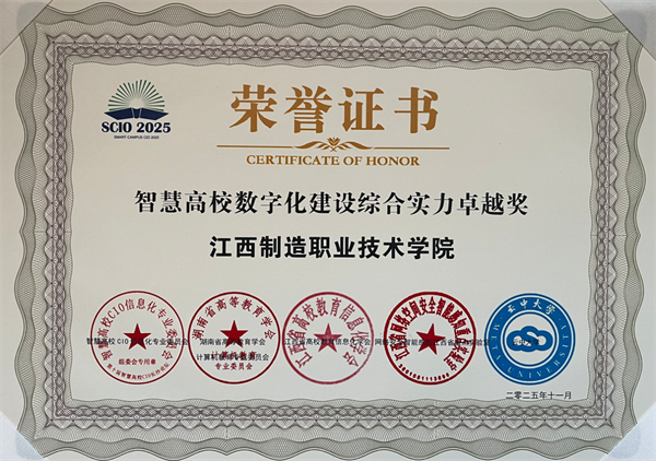 11月19日至21日,第十届智慧高校CIO论坛在长沙成功举办。经过专家团队的严格评审,江西制造职业技术学院荣获“智慧高校数字化建设综合实力卓越奖”。
