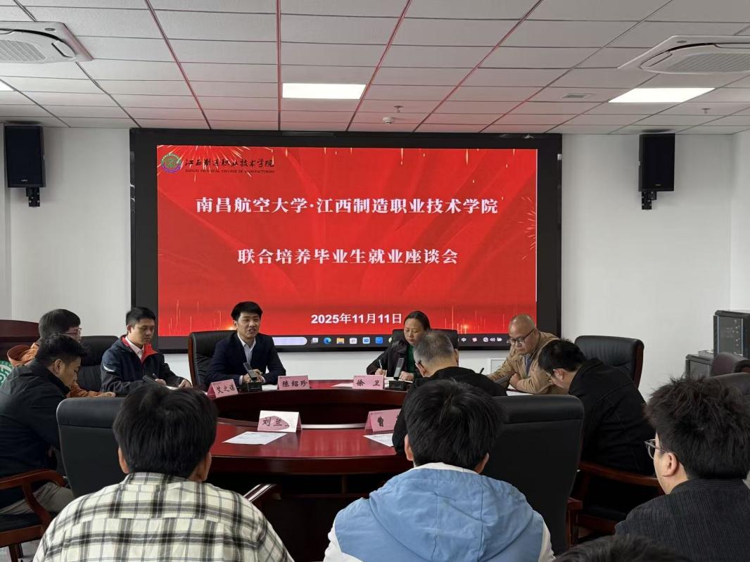 为深入贯彻落实高校毕业生就业工作部署,合力推动两校联合培养本科生实现更高质量就业。11月11日,南昌航空大学招生就业管理处处长陈绍珍一行莅临我校,出席联合培养毕业生就业工作座谈会。江西制造职业技术学院党委委员、副校长徐卫出席会议并讲话,招生就业处负责人、相关二级学院党委书记及院长共同参会。