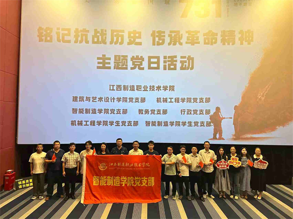在9月30日烈士纪念日这个承载着特殊历史意义与崇高敬意的时间节点,为激发党员爱国情怀与历史使命感,引导党员以史为鉴、砥砺初心,凝聚奋进力量,学校建筑与艺术设计学院党支部、机械工程学院党支部、智能制造学院党支部、教务党支部、行政党支部、机械工程学院学生党支部以及智能制造学院学生党支部共7个党支部100余名党员师生,于当日下午前往南昌奥体天虹潇湘青春影城,共同观看红色电影《731》,联合开展“铭记抗战历史 传承革命精神”主题党日活动。