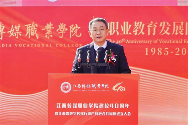 江西省教育厅二级巡视员陈晓通在致辞中指出,江西传媒职业学院四十年办学成果丰硕,为全省职业教育改革发展提供了宝贵经验。希望学校以建校40周年为新起点,以共同体建设为契机,在铸魂育人上建新功,在专业建设上开新局,在人才强校上拓新路,在开放合作上创新篇,努力建设成为特色鲜明、国内一流的传媒类高职院校,为江西经济社会发展作出新的更大贡献。