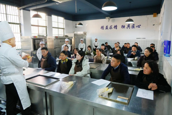 交流分享结束后,与会人员实地参观了我院“区直接联系人才”占剑华老师的五谷粮食画技能大师工作室,近距离领略非遗技艺的传承与创新。随后,大家走进实训课堂,亲身体验烘焙、糖艺等特色课程,在动手实践中感受职业教育的实践性与创造力,进一步理解了“工匠精神”在人才培养中的深刻内涵。