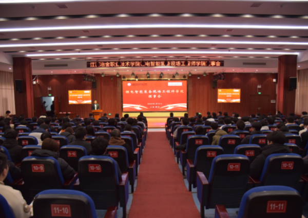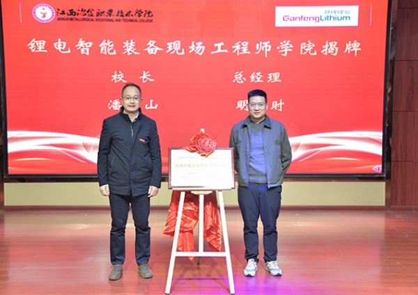 2026年1月14日,江西冶金职业技术学院图书馆学术报告厅内气氛庄重热烈,锂电智能装备现场工程师学院揭牌仪式在此举行。新余市教体局职教科科长邓智康、高新区科创局干部何庆栓、新余赣锋新锂源电池有限公司总经理明应时与校领导潘山、秦昊出席仪式。仪式由秦昊主持。