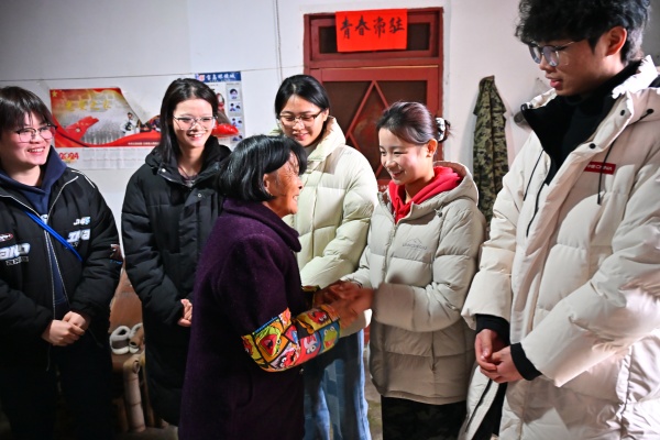 实践队一行还走访慰问了三湾村的两户贫困老人。同学们围在老人身边,关切地询问他们的身体健康状况、日常生活起居,聆听老人们讲述村庄的变迁与个人的经历。一声声温暖的问候,一句句贴心的闲聊,不仅为老人们带去了欢声笑语,更让同学们直观地感受到老区人民的淳朴与坚韧,体会到在新时代关怀民生、服务基层的具体内涵。从革命年代“十送红军”的不舍,到今日青年学子对老区群众的问候,为人民服务的初心一脉相承。追寻革命先辈的足迹,融入当下的现实关切,队员们深刻体悟到“全心全意为人民服务”不是一句口号,而是融入血脉的初心本源,坚定了将个人成长融入为人民事业奋斗之中的价值追求。