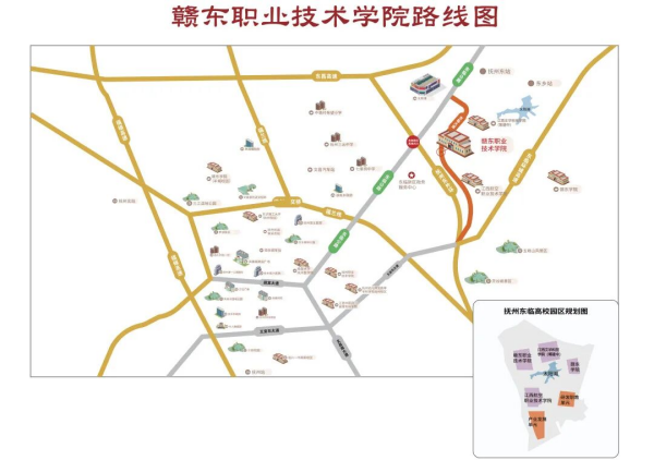 学校坐落于江西省抚州市东临新区,规划总占地面积1700亩,建筑面积约45万平方米。学校以“前府后园、山水相融”的理念,整体规划,分期建设。学校按照职业教育的内涵办学,立足于校企合作、产教融合、工学结合的办学特色,走产学研用结合的道路,坚持创新发展、特色兴校、质量强校。对标高水平高职学校建设,围绕职业技术技能型人才培养,建成若干个有一定社会影响力和竞争力的职业技术专业群,有创新示范价值的、特色鲜明的高水平职业院校。