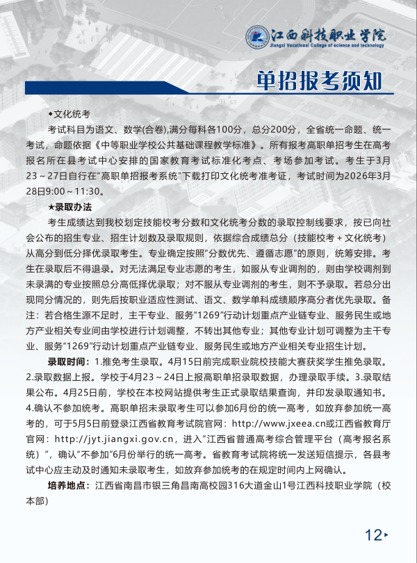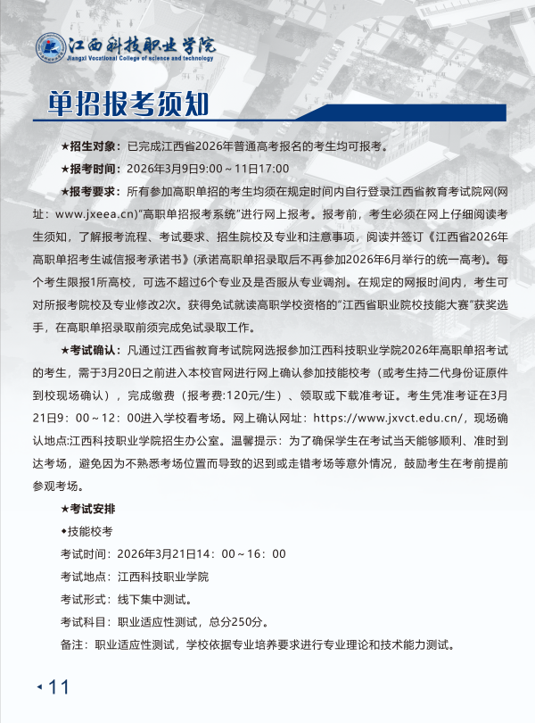 江西科技职业学院2026单招简章