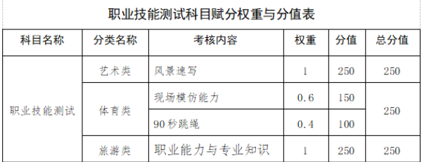(2)职业技能测试:根据招生专业大类的培养要求进行设计,主要是对考生职业能力、技术能力等方面进行考核评价。艺术类、体育类、旅游类采用职业技能测试。具体有: