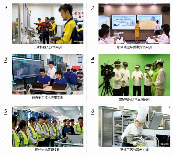 学校围绕产业设专业、产教融合建专业、凝练特色强专业,重点打造工业机器人技术、粮食储运与质量安全、信息安全技术应用、虚拟现实技术应用、现代物流管理、烹饪工艺与营养六个专业群,以专业群的发展带动专业建设,服务区域产业经济发展。