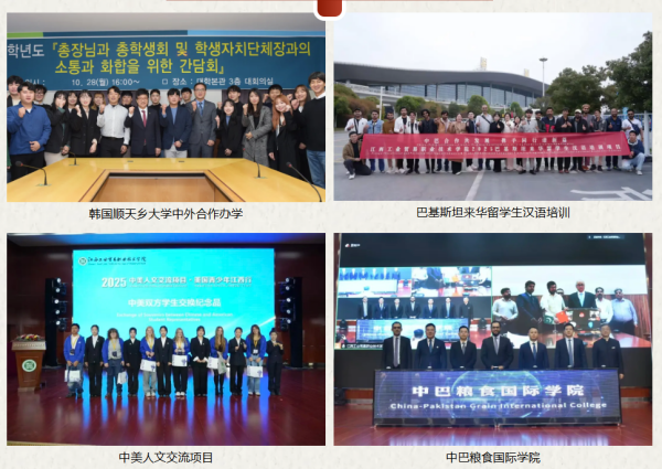 学校积极响应国家“一带一路”倡议,国际交流合作不断深化,国际化办学水平逐步提升,是江西省首批招收全日制留学生的高职院校之一。2024年与巴基斯坦费萨拉巴德农业大学共建海外分校“中巴粮食国际学院”,招收培养来华留学生;建设“中马青年职教培训计划”国际交流中心”,开展职教培训与中外人文交流活动;与韩国顺天乡大学共同开设3个中外合作办学专业,拓宽学生升学途径及提升学生就业竞争力;与中国江西国际经济技术合作有限公司合作共建国际产教融合实训基地,服务中资企业海外业务高质量发展,不断扩大学校国际朋友圈,助力提升我国教育的国际影响力、竞争力和话语权。