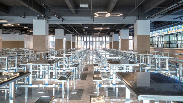 食堂位于校园生活区的中心,3层框架结构,建筑面积达7750平方米,是集大众餐饮、风味特色小吃、购物超市、休闲于一体的综合服务中心。