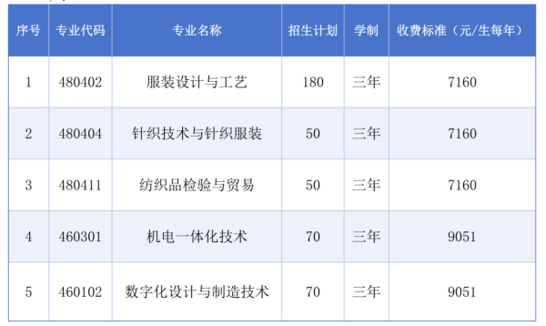 单招招生专业、收费标准一览表