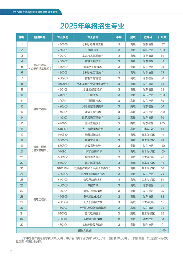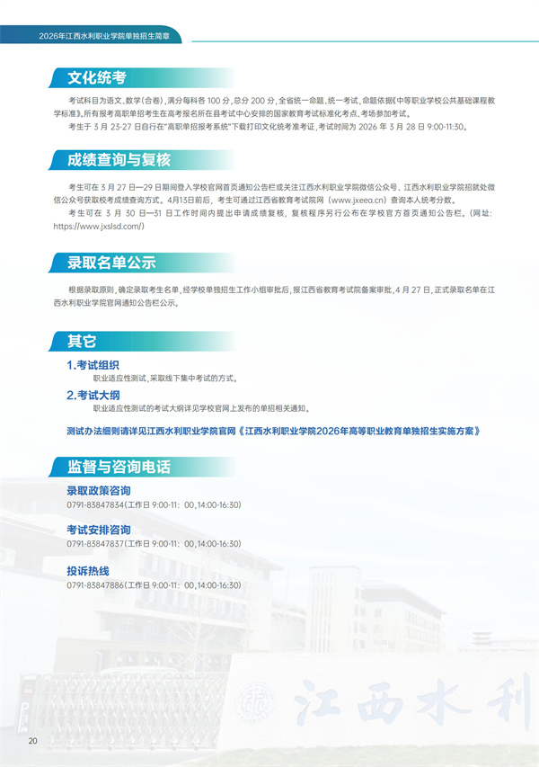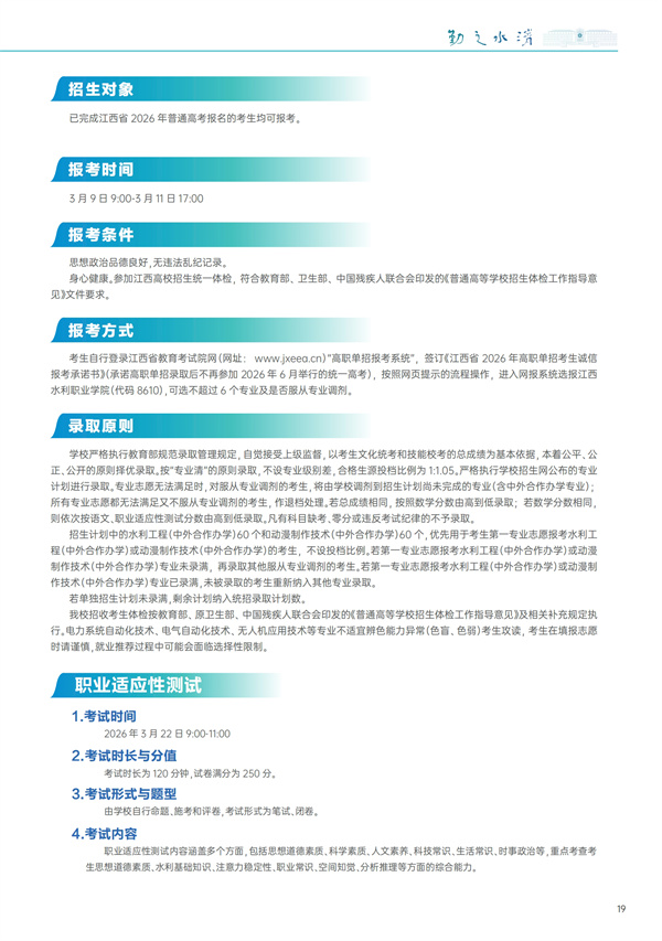 江西水利职业学院2026年单独招生简章