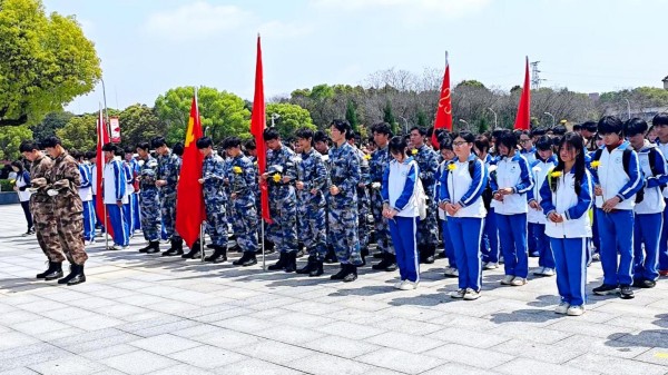 抵达陵园后,祭扫仪式正式开始。全体师生整齐列队,怀着无比崇敬的心情,以三重仪式告慰英烈忠魂。