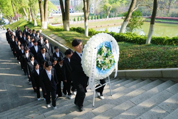 随后,师生代表缓步向前,向革命烈士敬献花圈。全体人员肃立静穆、行三鞠躬礼,并集体默哀一分钟,向为民族独立、人民解放英勇献身的革命先烈致以最崇高的敬意。仪式结束后,师生们缓步瞻仰烈士墓,认真聆听革命事迹,追思先烈们浴血奋战、不怕牺牲的英雄壮举,接受深刻的红色精神洗礼。