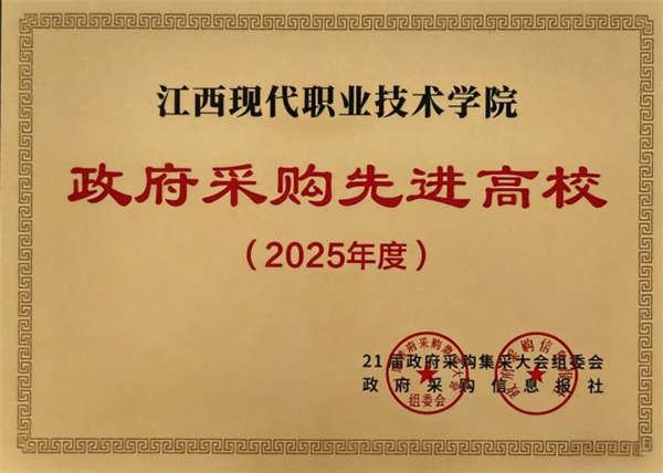 近日,第21届政府采购集采大会在北京召开,大会以政府采购标准化为主题,财政部、中央国家机关采购中心相关领导及全国350余家单位代表参会。经大会组委会专业评审与综合实绩考核,江西现代职院获评“2025年度政府采购先进高校”称号。